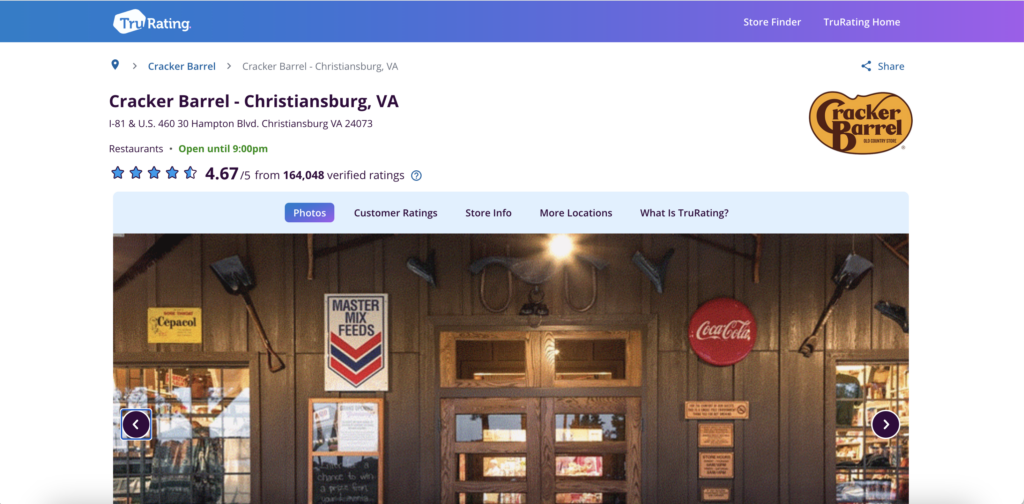 Cracker Barrel, Christiansburg, VA, TruRating Profile Page