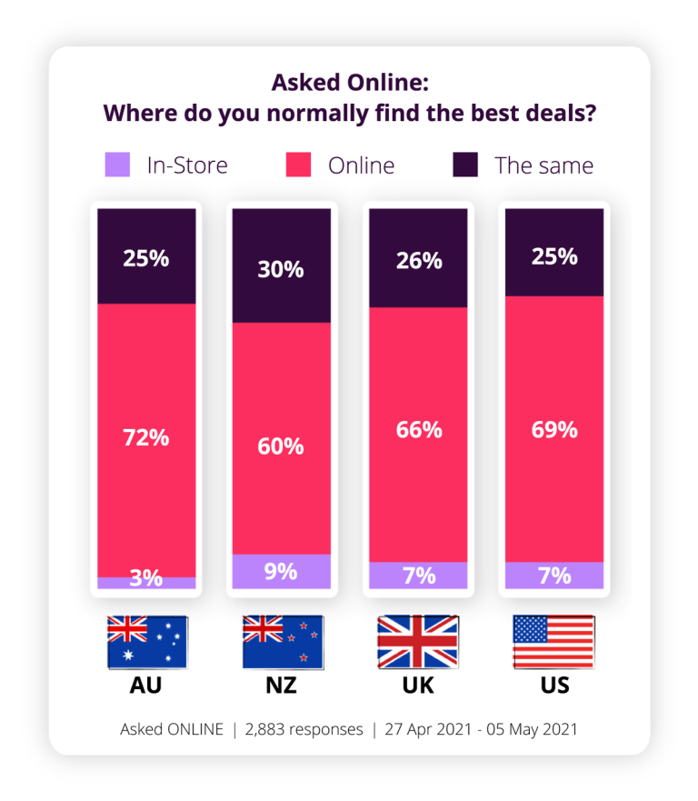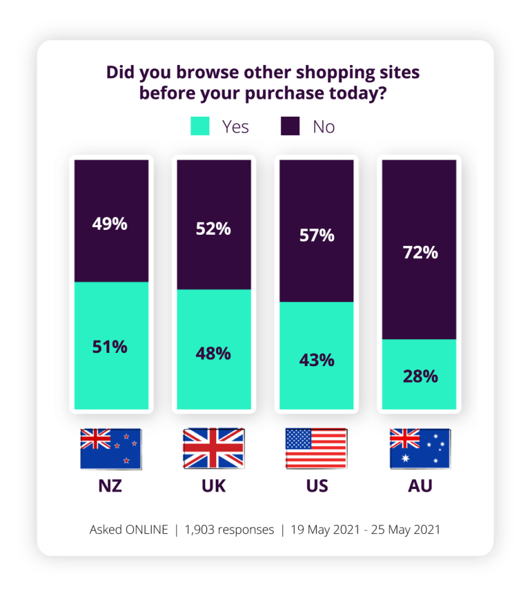 While online shoppers track in a similar way for the US + UK, we see a split between the AU + NZ with Kiwi’s slightly more willing to bet a better deal awaits in store.